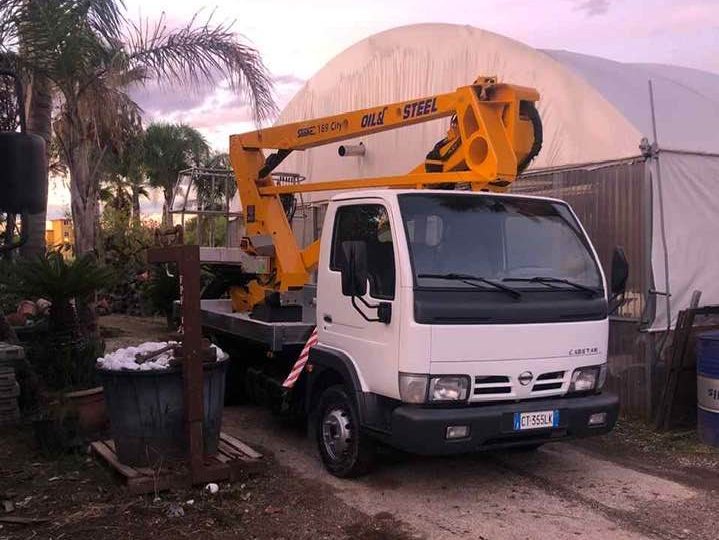 PIATTAFORMA AEREA Oil&Steel con altezza massima di lavoro 19 metri. Il Noleggio può essere con conducente o senza.